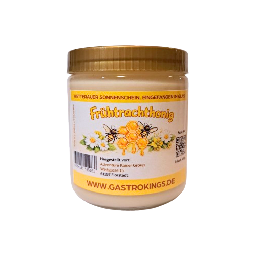 Unser Frühtrachthonig stammt aus eigener Herstellung in der Wetterau – geerntet im Frühjahr, wenn Raps und Obstblüten in voller Blüte stehen.
