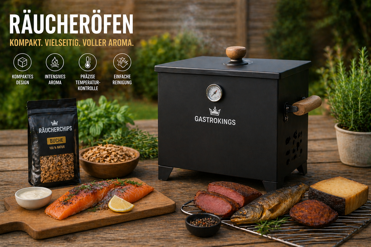 Gastrokings bietet hochwertige Räucheröfen für Einsteiger ebenso wie für erfahrene Räucherprofis. Ergänzend stehen passendes Zubehör wie Räuchermehl, Räucherlauge, Thermometer, Gewürze und weitere Räucherprodukte zur Verfügung, um perfekte Ergebnisse zu erzielen.